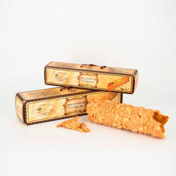 Il Croccante di Fiumalbo come ricetta vuole, tramandata di generazione in generazione, è prodotto solo ed esclusivamente con Mandorle “Donna Francesca” dfella pregiata varietà 100% Filippo Cea caratterizzara da un profilo nutrizionale qualitativamente unico e dal sapore dolce, aromatico, molto intenso ma equilibrato , con note di burro finali.