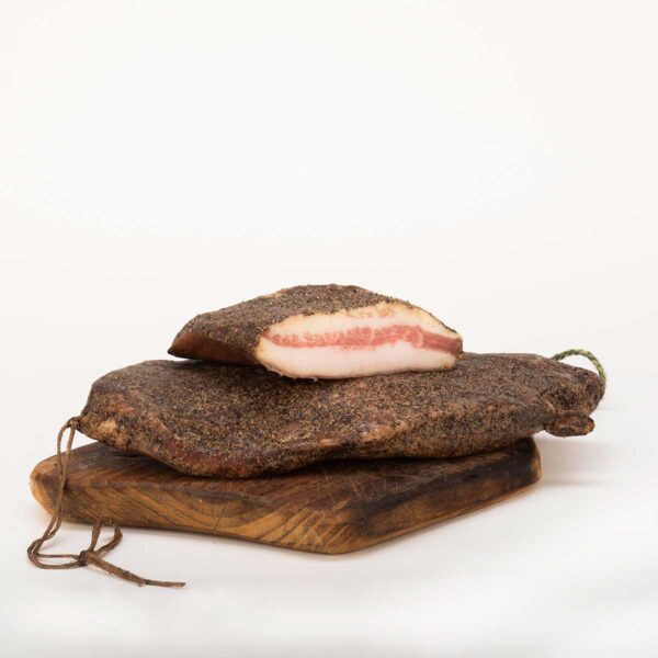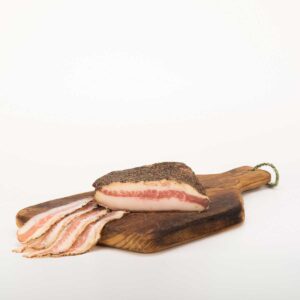 Guanciale stagionato lentamente all’aria del nostro appennino Tosco-Emiliano, senza conservanti e ottimo sostituto della pancetta nella preparazione dei vostri piatti.