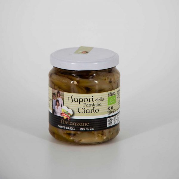 Ingredienti: Melanzane 63,6%, olio extra vergine di oliva, aceto di vino, aglio, origano, peperoncino, sale marino