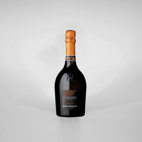Dalla vinificazione in assoluta purezza di uve di Glera al 100% che nasce dalle cantine di Borgo Molino questo spettacolare Valdobbiadene Prosecco Superiore Dry, in grado di vantare la certificazione e l’onorificenza più alta in tema di enologia. La provenienza è quella classica del Veneto DOCG Valdobbiadene che ne certifica la Denominazione di Origine Controllata e Garantita. La vinificazione prevede la pressatura soffice. E la fermentazione si sviluppa a temperature controllata di 15°C in acciaio. La fermentazione e presa di spuma si estende per 45 giorni in speciali recipienti a tenuta di pressione. Metodo Charmat.